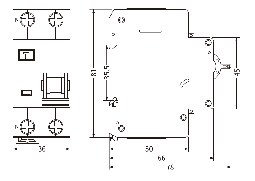 | Kutup sayısı | 1P+N 2 modül, N hattı bağlantısız |